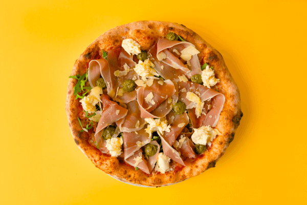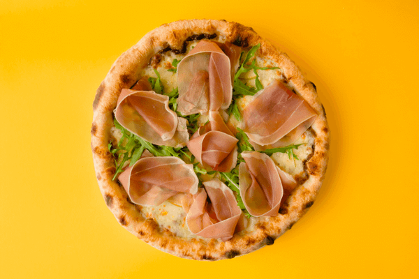 Tomato base, mozzarella, fior di latte, semi dried tomatoes, rocket, prosciutto, pesto, parmesan