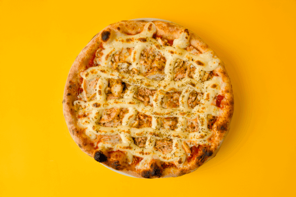 Garlic base, mozzarella, tandoori chicken, red onion, mint yogurt, mango salsa