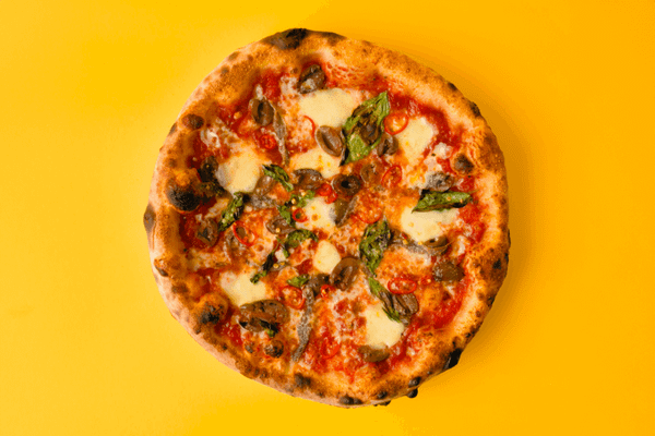 Tomato base, mozzarella, fior di latte, basil, fresh chili, black olives, anchovies