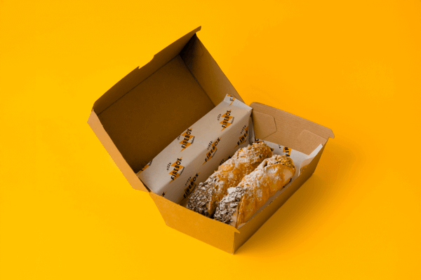 Crispy Italian pastry shells filled with creamy dulce de leche, topped with shaved dark chocolate and crushed pistachios. A perfect bite of indulgence!