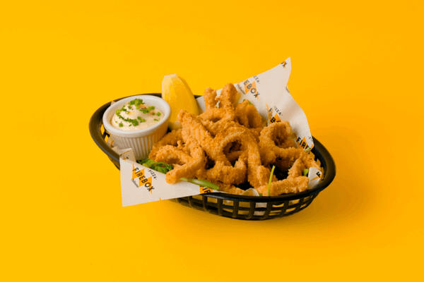 Crispy, golden-fried calamari served with fresh rocket, a wedge of zesty lemon, and a side of creamy roasted garlic aioli. Gluten-free and absolutely delicious!