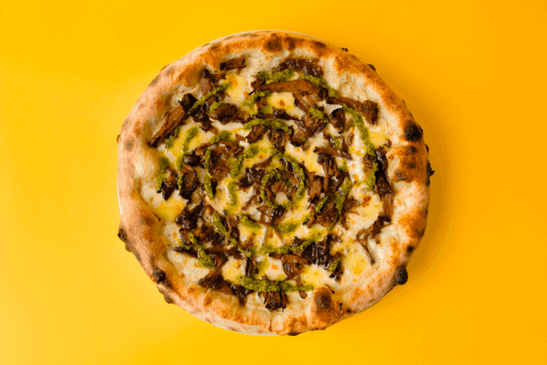 Garlic base, mozzarella, pork & fennel sausage, portobello mushroom,pickled broccoli shoots, truffle oil